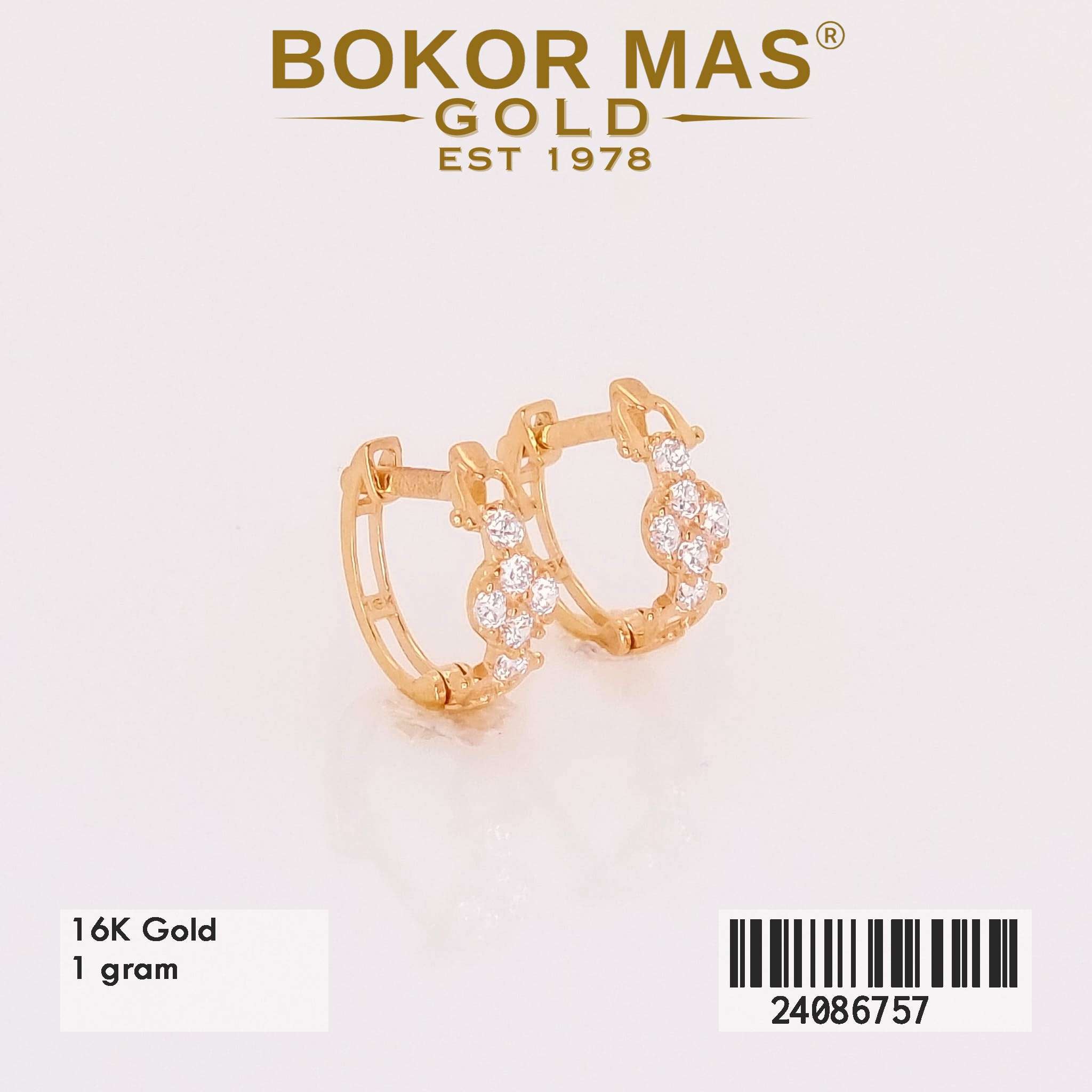 Anting Emas Klip Lengkung Variasi Permata Putih - 24086757 - 16K