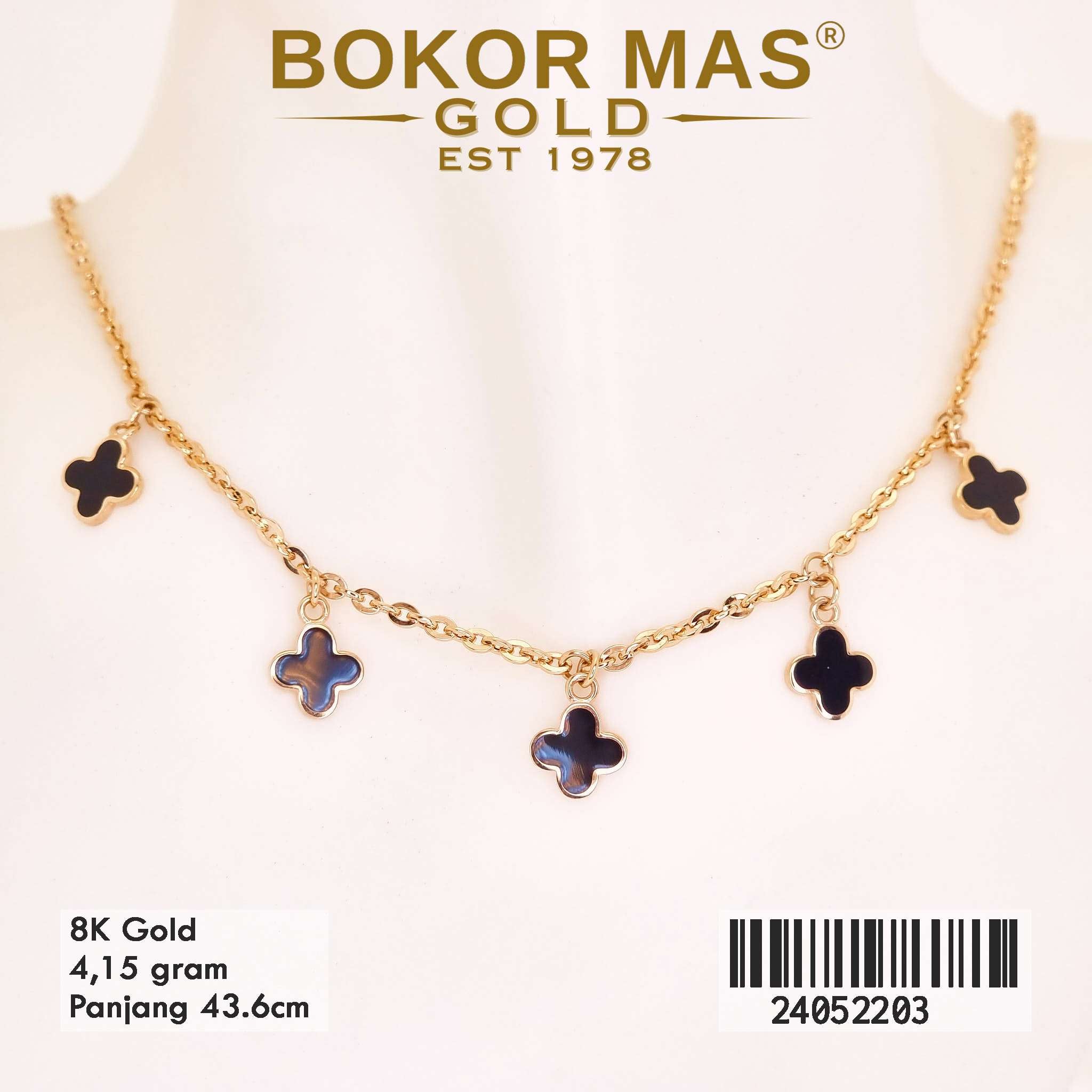 Kalung Emas Clover Cat Hitam Variasi - 24052203 - 8K