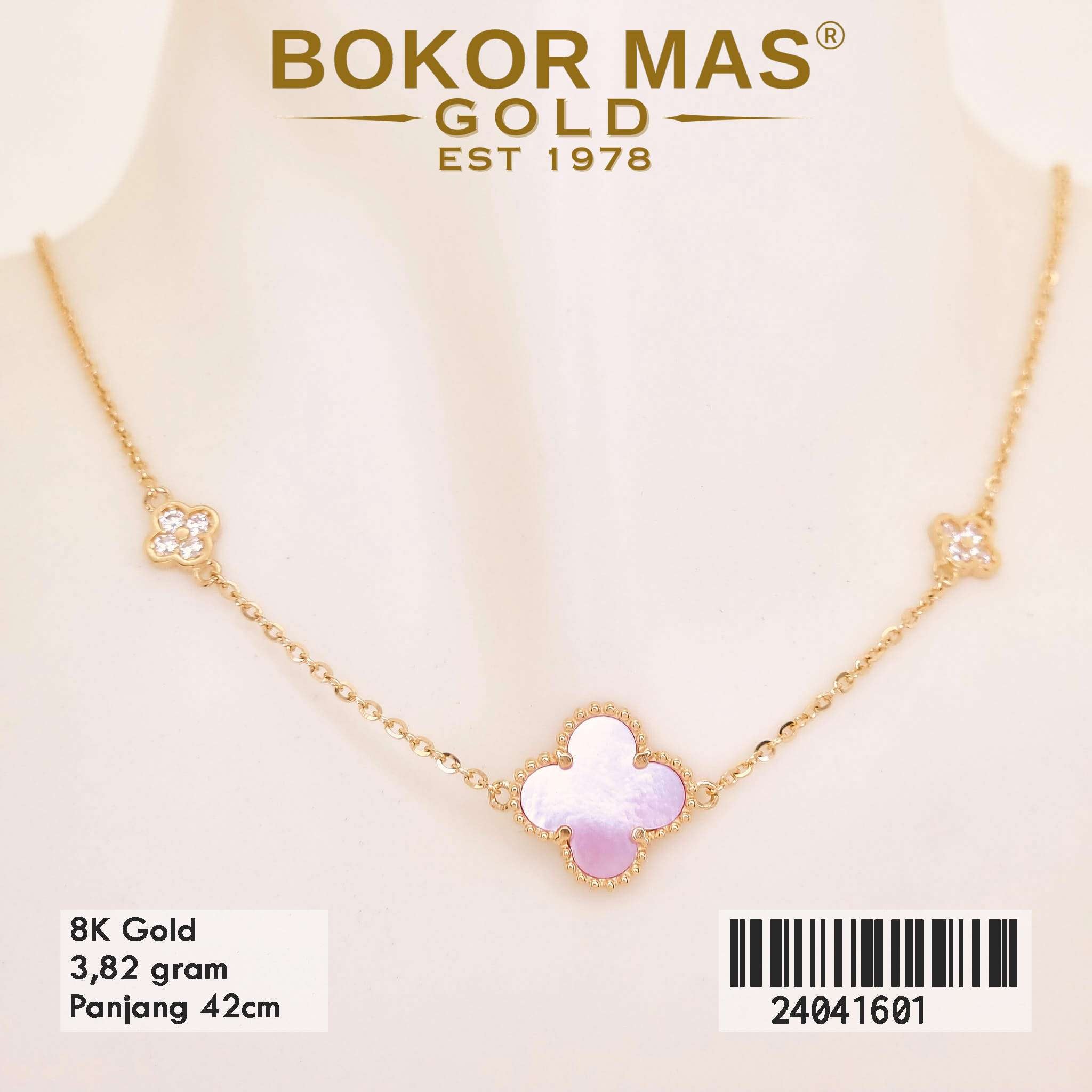 Kalung Emas Clover Pink Variasi Permata - 24041601 - 8K